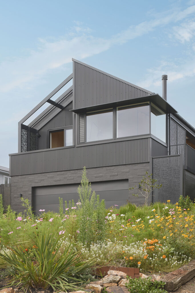 Durable black metal cladding gives the exterior a crisp, elegant presence, while the playful eyebrow above the corner window marks the house as both functional and characterful. Open + Shut is a home that changes with life – welcoming guests, offering quiet retreats, and reshaping itself to match the rhythms of life.